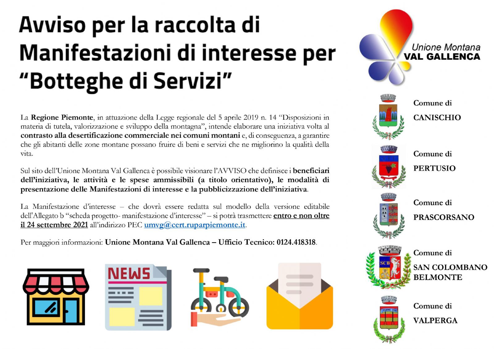 AVVISO PER LA RACCOLTA DI MANIFESTAZIONI DI INTERESSE PER "BOTTEGHE DI SERVIZI"