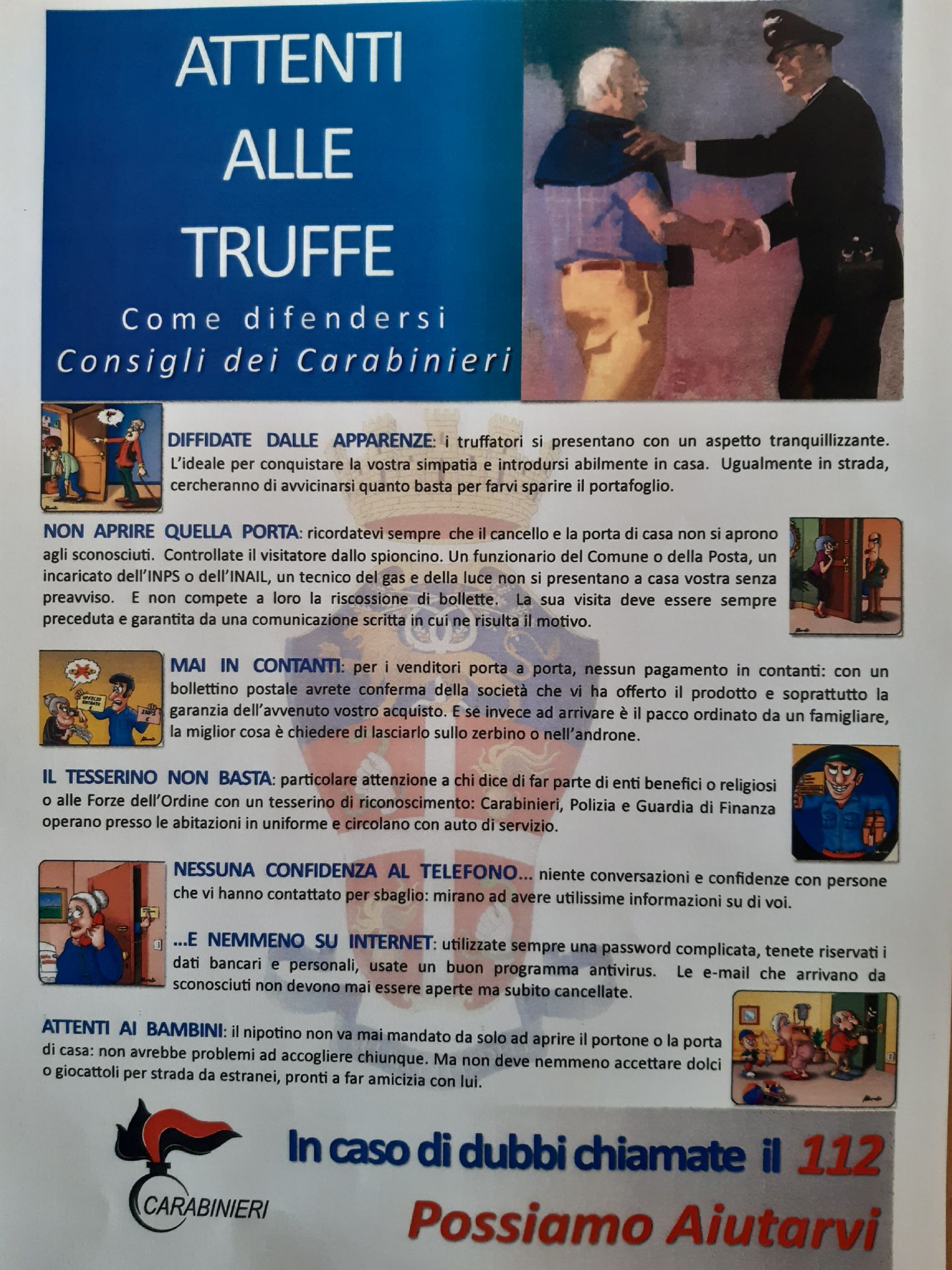 I CONSIGLI DEI CARABINIERI CONTRO LE TRUFFE AGLI ANZIANI