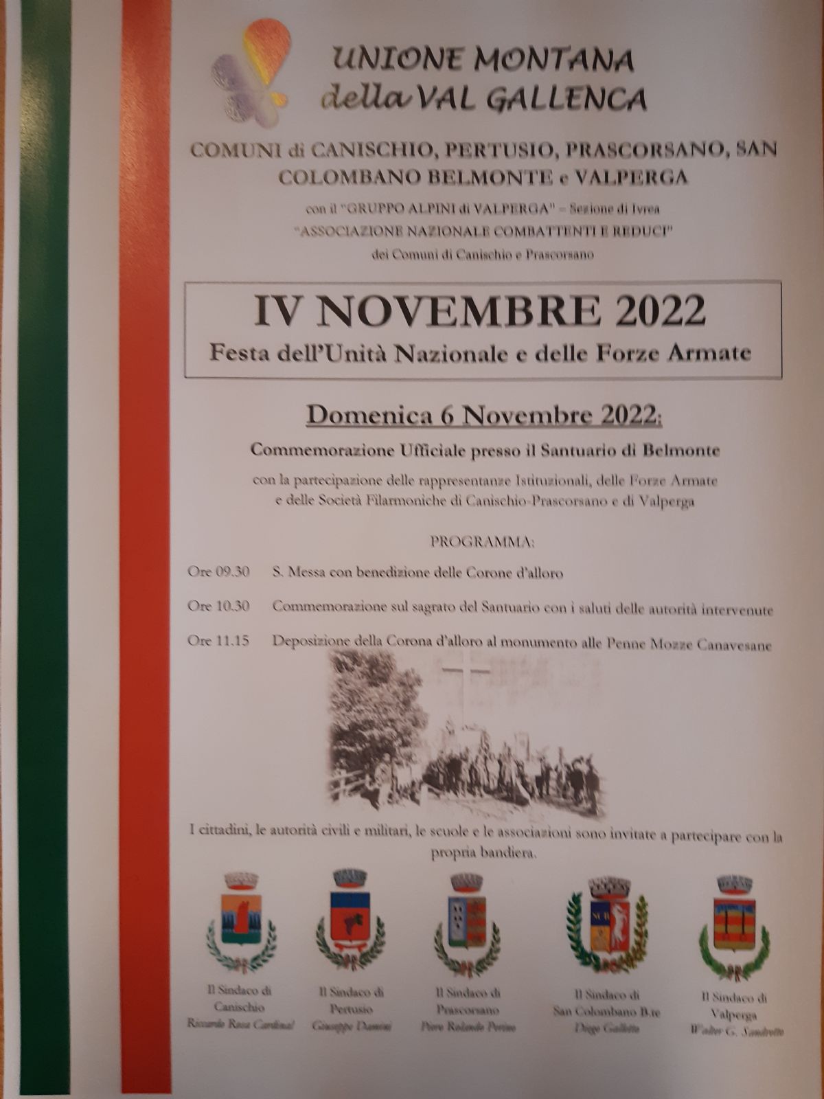 IV NOVEMBRE 2022 - Festa dell'Unità Nazionale e delle Forze Armate. - Domenica 6 novembre 2022.