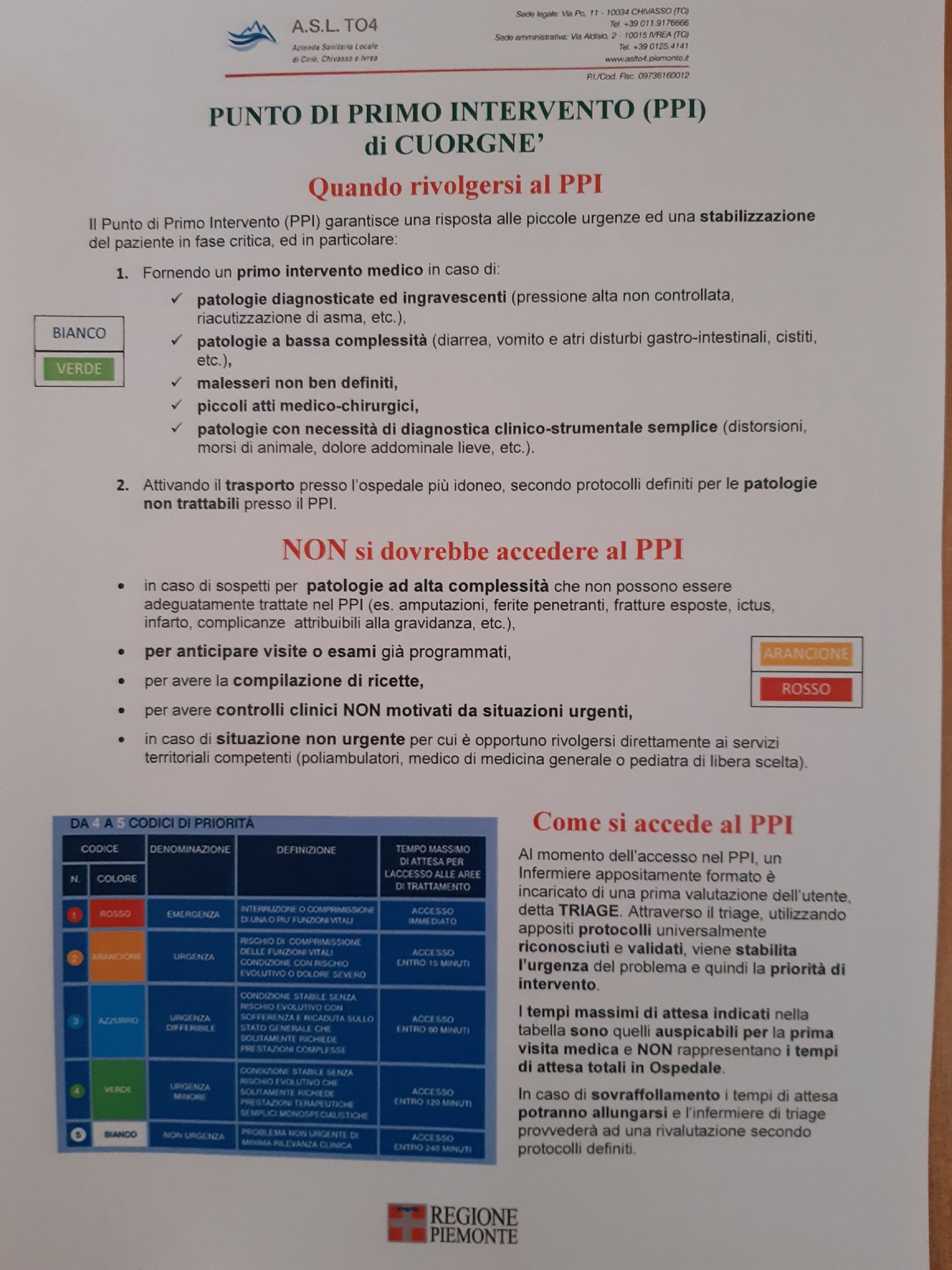 PUNTO DI PRIMO INTERVENTO (PPI) DI CUORGNE'