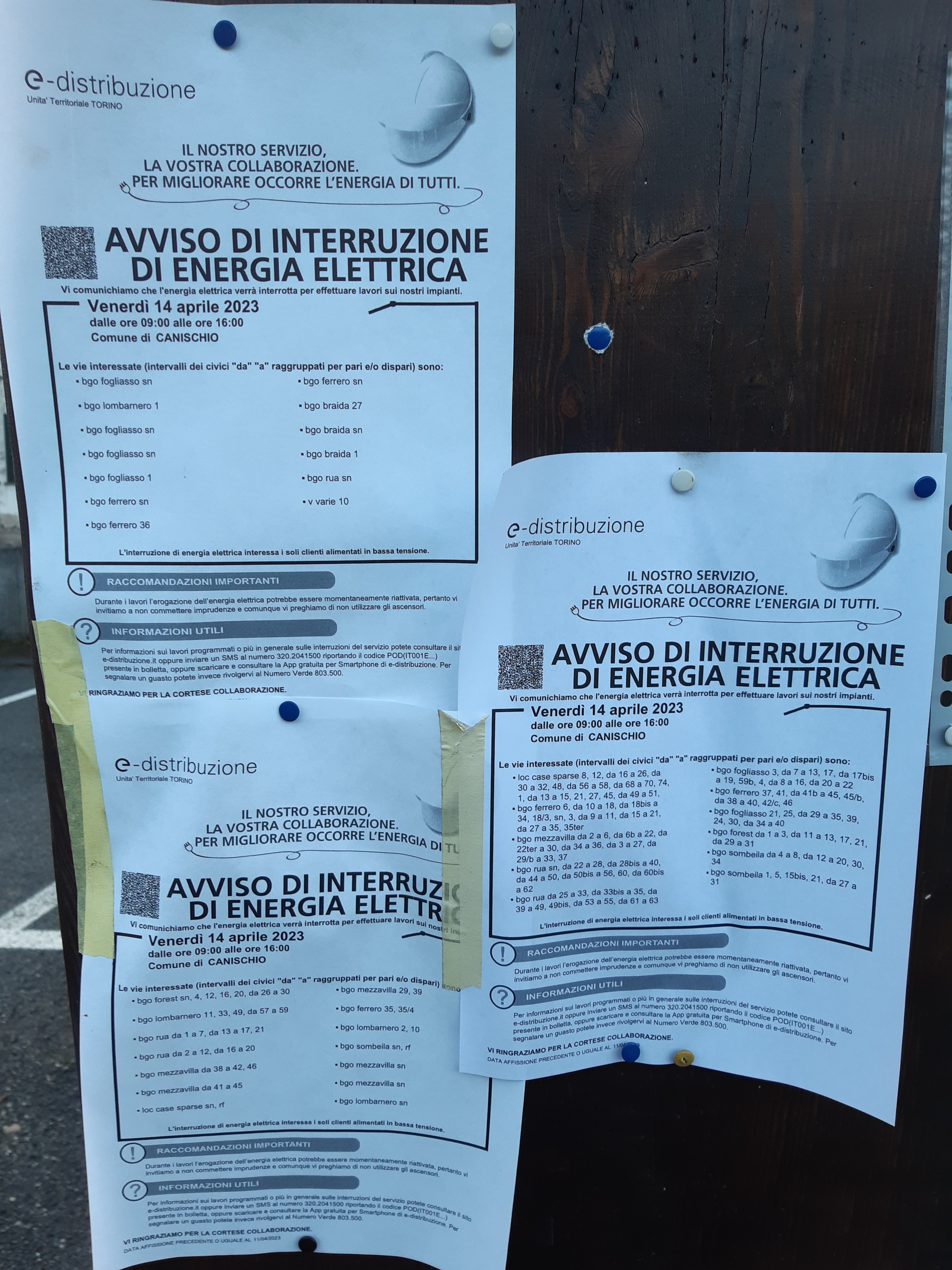 si comunica che enel distribuzione ha comunicato mediante gli avvisi affissi sul territorio comunale, che si riportano in allegato, l'interruzione dell'energia elettrica nel giorno venerdi' 14 aprile 2023 dalle ore 09,00 alle ore 16,00 nelle zone indicate.