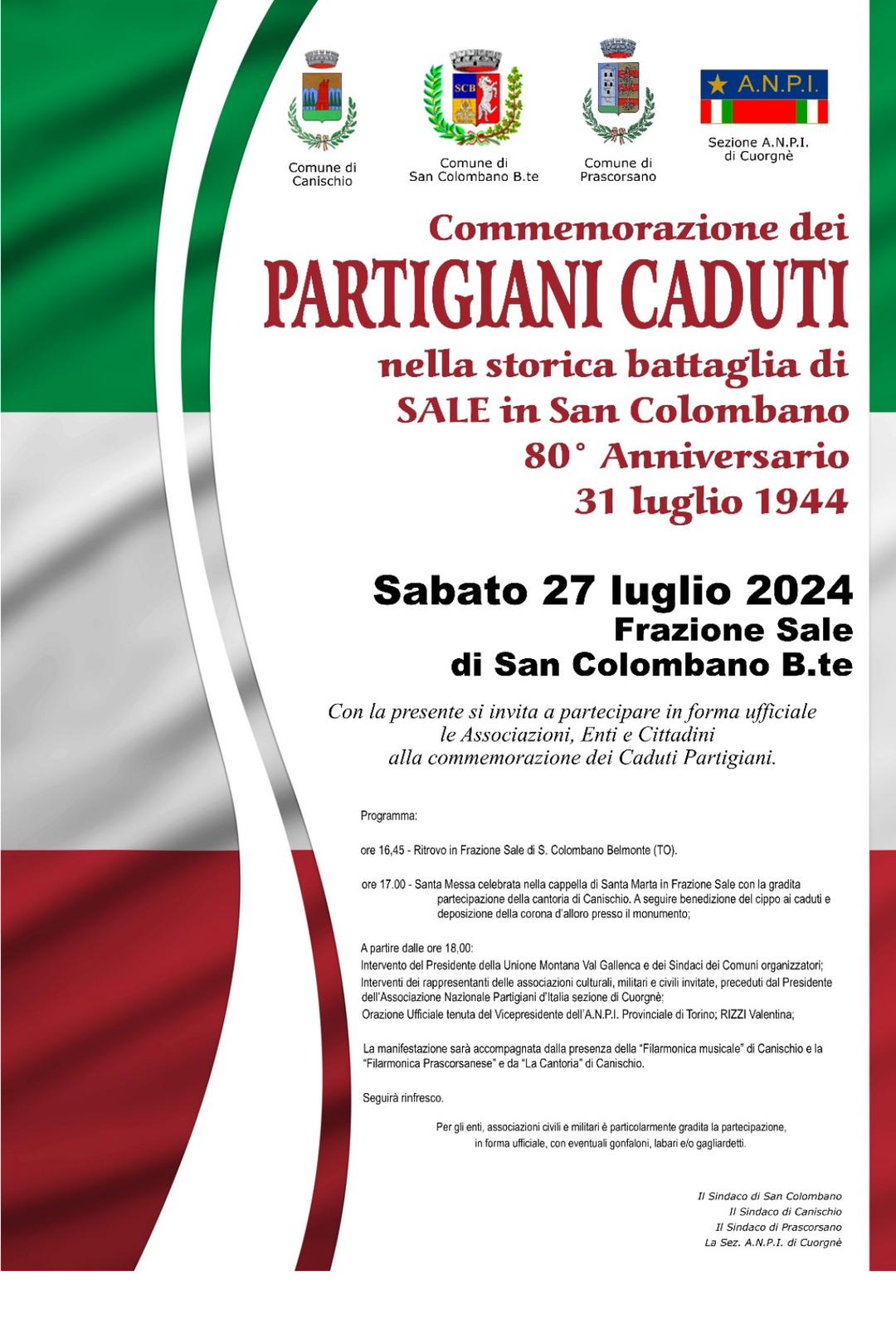 Manifestazione civile per la commemorazione ed il ricordo della battaglia partigiana di Fraz. SALE in San Colombano B.te di Luglio 1944