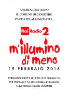 Il Comune di Canischio partecipa all'iniziativa annuale di RAI RADIO2 per sensibilizzare il contenimento del consumo energetico.
