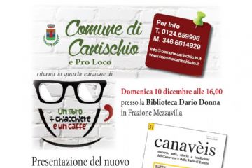 Domenica 10 Dicembre, dalle ore 16.00, presso la Biblioteca Comunale "Dario Donna", Vi sarà la presentazione del nuovo numero della rivista "Canavèis" e del Volume della giovane autrice, Federica...