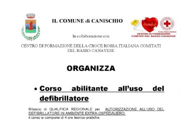 Il Comune di Canischio, in collaborazione con il "Centro di formazione della Croce Rossa Italiana comitati del Basso Canavese", ripropone il Corso abilitante all'uso del DEFIBRILLATORE.