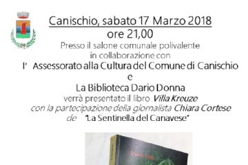 Sabato 17 Marzo, alle ore 21.00, presso il Salone comunale di Canischio, verrà tenuta la presentazione del Libro "Villa Kreuze" scritto dal Canischiese Ing. Franco FERRO.