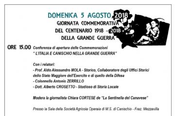 L'Amministrazione comunale di Canischio con il coordinamento del Comando Esercito Piemonte organizza una Mostra per commemorare il Centenario dalla...