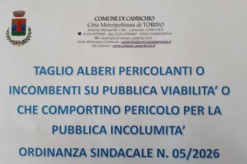 In data 23.02.2026 è stata emessa ordinanza sindacale n. 05/2026 ad oggetto "Abbattimento e...