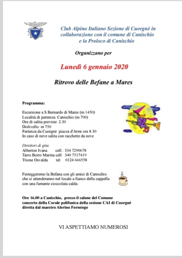 Anche quest'anno Vi aspettiamo il 6 Gennaio a Canischio per festeggiare insieme agli amici del CAI-Sez. di Cuorgnè, la Befana!!