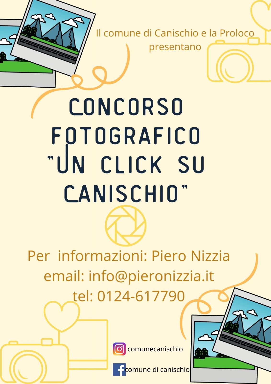 Il Comune di Canischio e la Proloco canischiese presentano il primo concorso fotografico denominato: "un click su Canischio". Per maggiori informazioni rivolgersi al Responsabile artistico del progetto, il fotografo Piero NIZZIA, con studio in Valperga(TO).