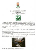Il Comune di Canischio, avendo ricevuto in donazione un Defibrillatore semi-automatico, intende avviare un corso di primo soccorso con defibrillatore DAE, in collaborazione con la Croce Rossa di Settimo Torinese.