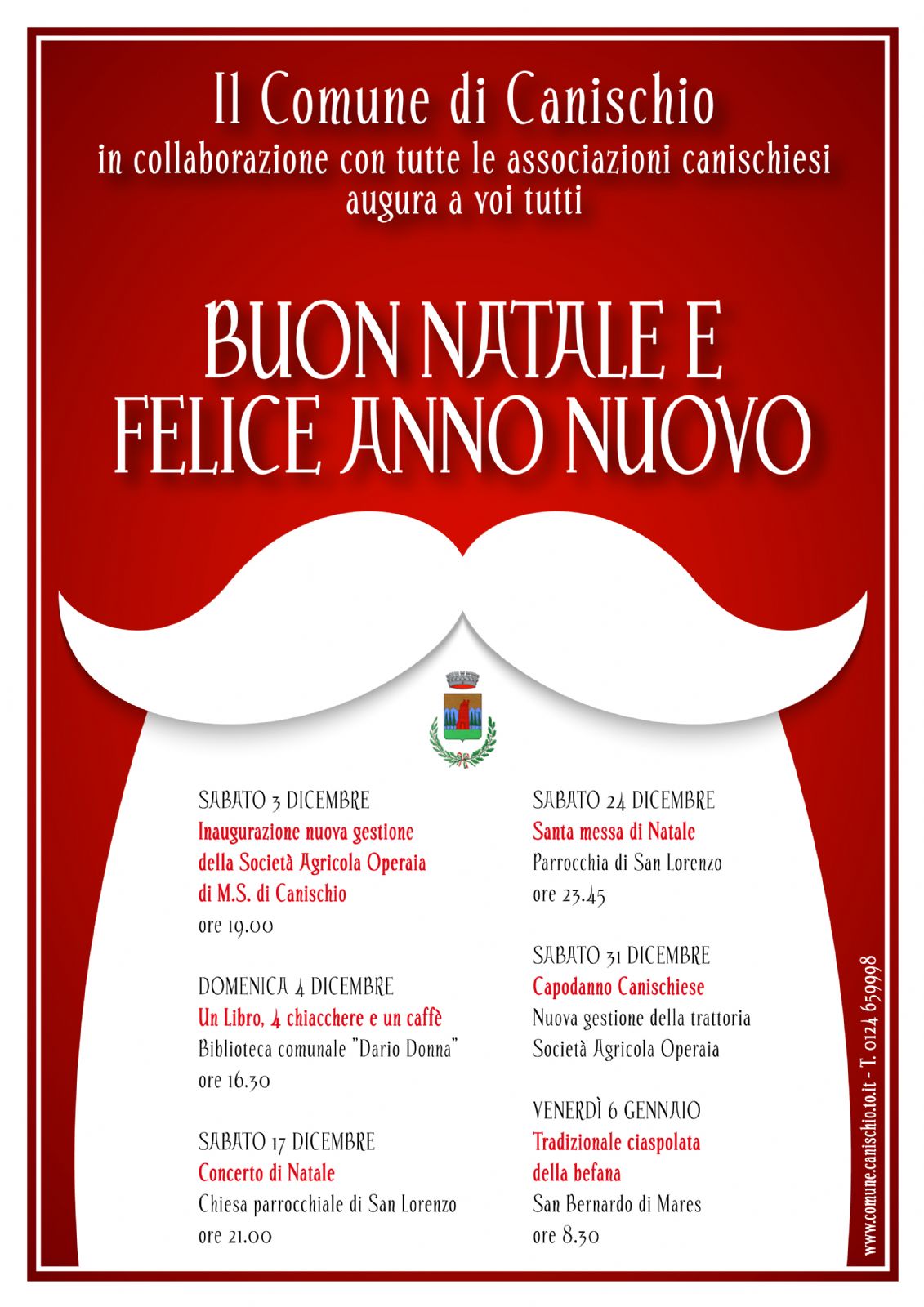 Anche quest'anno il Comune di Canischio in collaborazione con tutte le Ass.ni del paese, propone un ricco programma natalizio, a partire dal 4 Dicembre fino all'Epifania!
