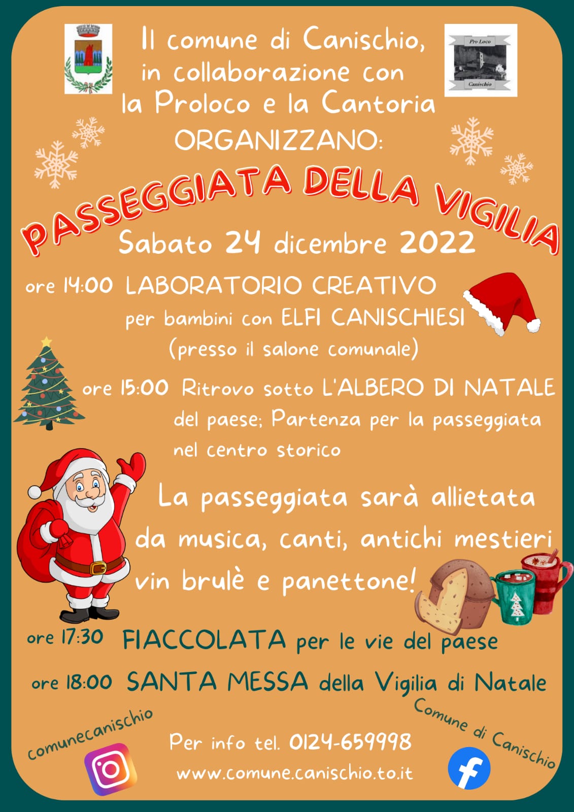 Sabato 24 Dicembre passeggiata nel centro storico del Comune di Canschio accompagnati da musica, canti, antichi mestieri e dolci e caldi ristori...VI ASPETTIAMO per trascorrere insieme la Vigilia di Natale!