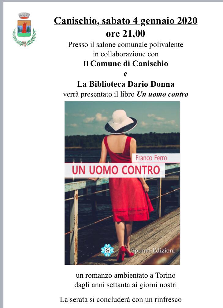 Il Comune di Canischio e la Biblioteca comunale "Dario Donna" sono lieti di ospitare la presentazione del nuovo romanzo dello scrittore canischiese, Franco Ferro: "UN UOMO CONTRO".