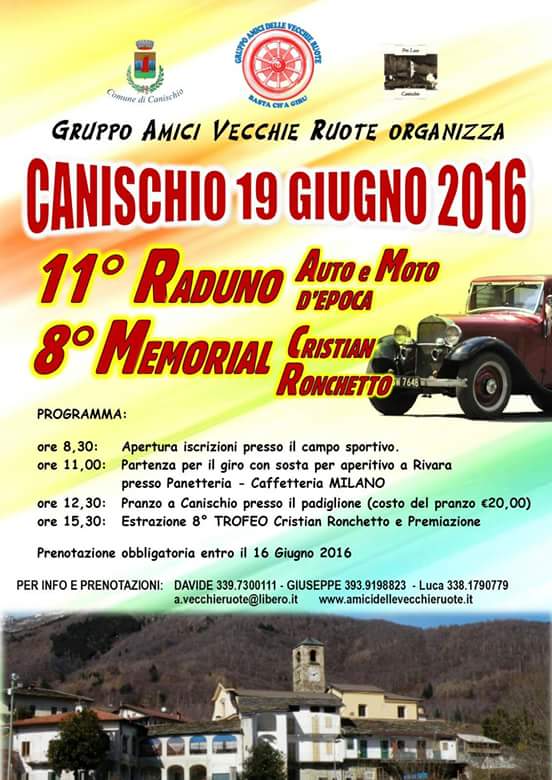 Ed ecco l'undicesima edizione del Memorial "Cristian Ronchetto"-Raduno moto e auto d'epoca, organizzato dal GRUPPO AMICI VECCHIE RUOTE.