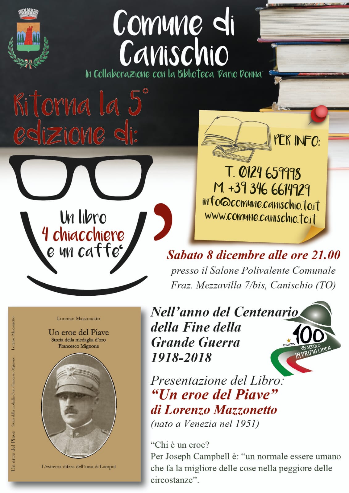 Quest'anno, in tema con le commemorazioni del Centenario dal termine della Grande Guerra 1918/2018, protagonista della serata sarà lo scrittore Lorenzo MAZZONETTO, autore del libro "Un eroe del Piave".